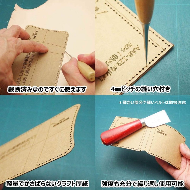 - Comes with leathercrafting paper pattern and instruction sheet (English language not guaranteed).The pattern is made of hard paper and is pre-cut, so you can lay it over leather and make markings.Holes are punched at a pitch of 1.77-inch (45 mm).