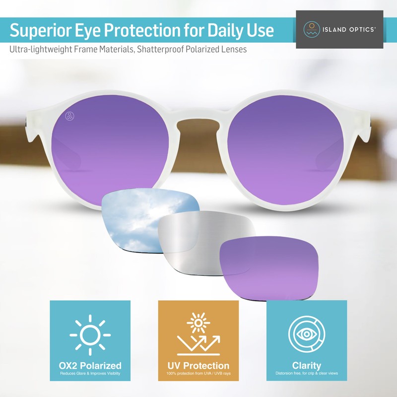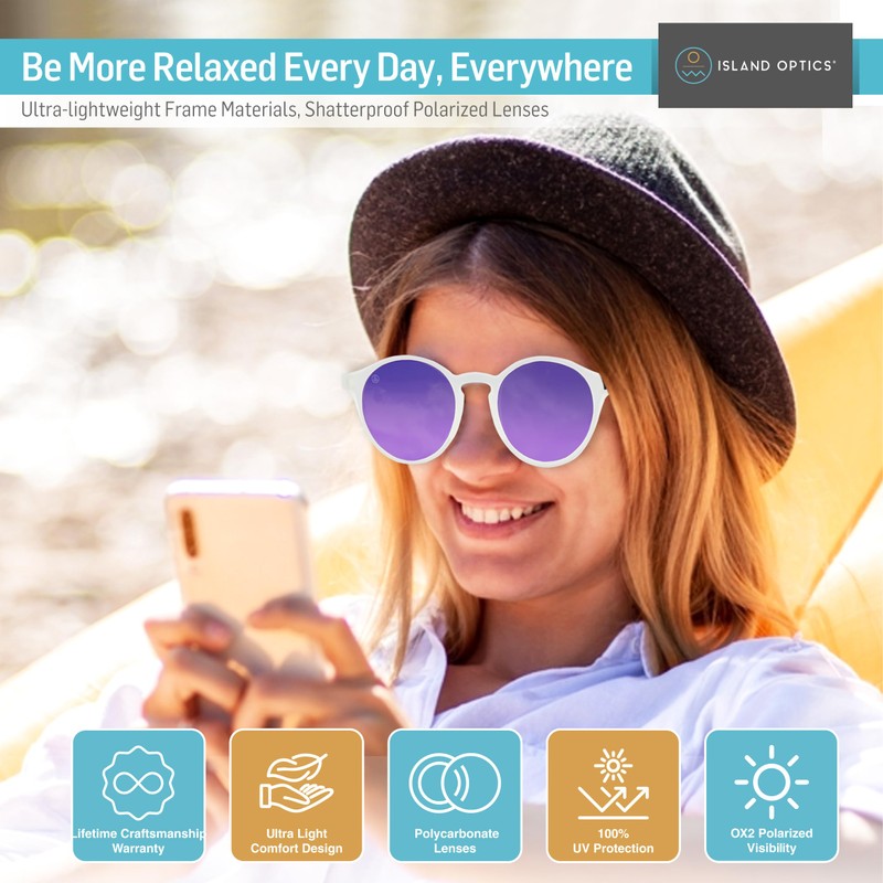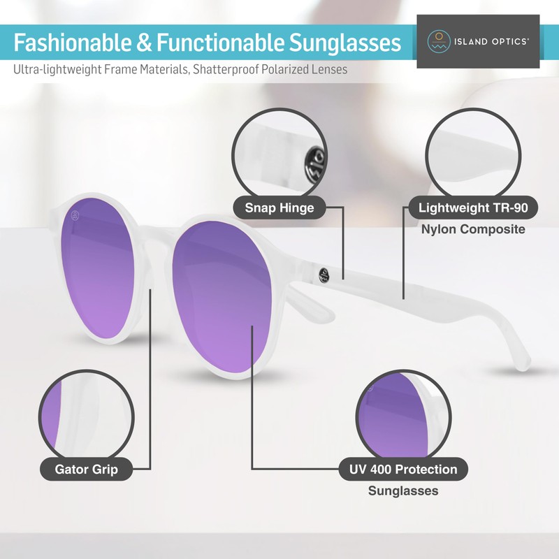 ISLANDOPTICS Capri Polarized Sunglasses (Frosted White, Purple Nova)