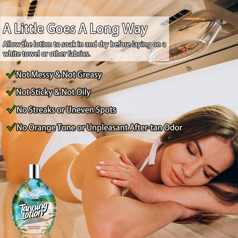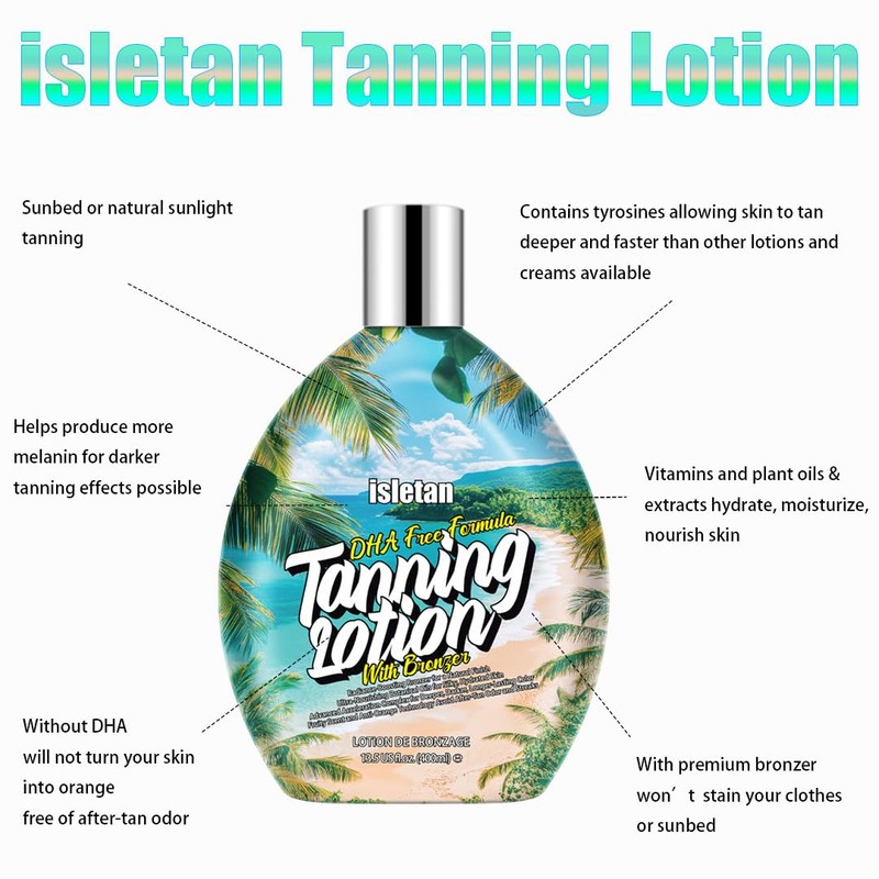 - DHA-Free Formula with Rich Bronzer. The indoor tanning lotion with bronzer is DHA-free and packed with high-quality natural bronzers that give you instant color without staining or turning your skin orange. It's the perfect tanning bed lotion with bronzer for those who want an even, golden glow.