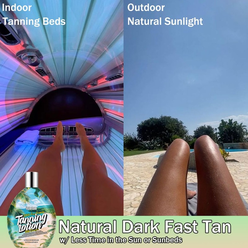 - Get Dark, Fast – Indoors & Out. Designed for both tanning beds and outdoor sun, our dark tanning lotion for indoor tanning beds and outdoor use helps you achieve a deep, natural-looking tan quicker than ever. This tanning bed lotion accelerator is ideal for achieving fast, noticeable results – no matter where you tan.
