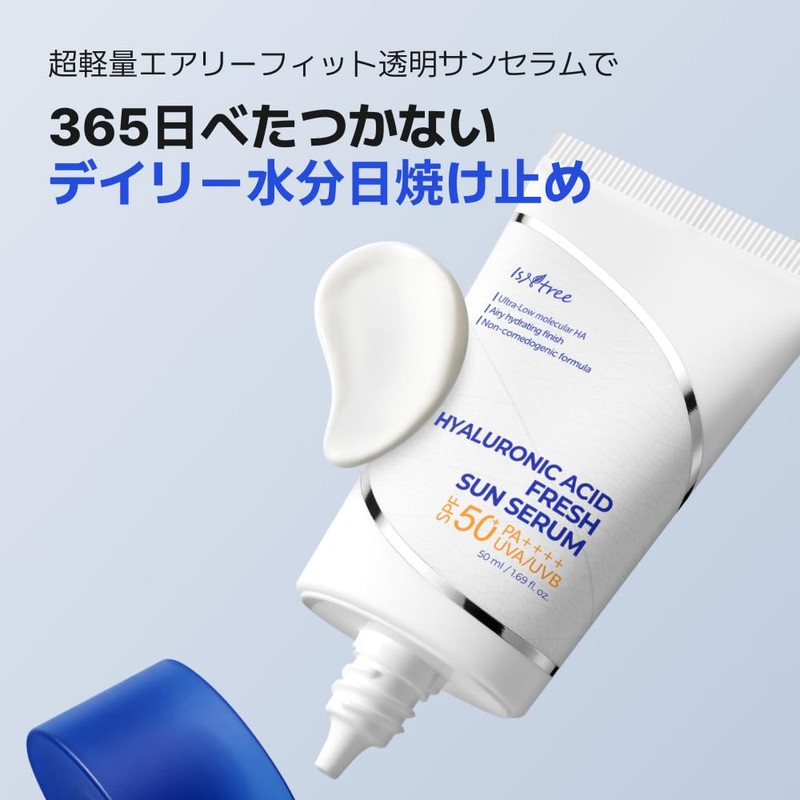 ISNTREE Izentree Hyaluronic Acid Fresh Sun Serum, 1.7 fl oz (50 ml), Moisture Sunscreen, Smooth Cooling