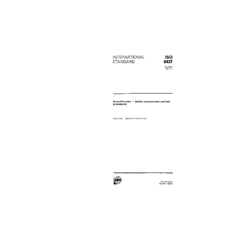ISO 8437:1989, Snowthrowers - Safety requirements and test procedures