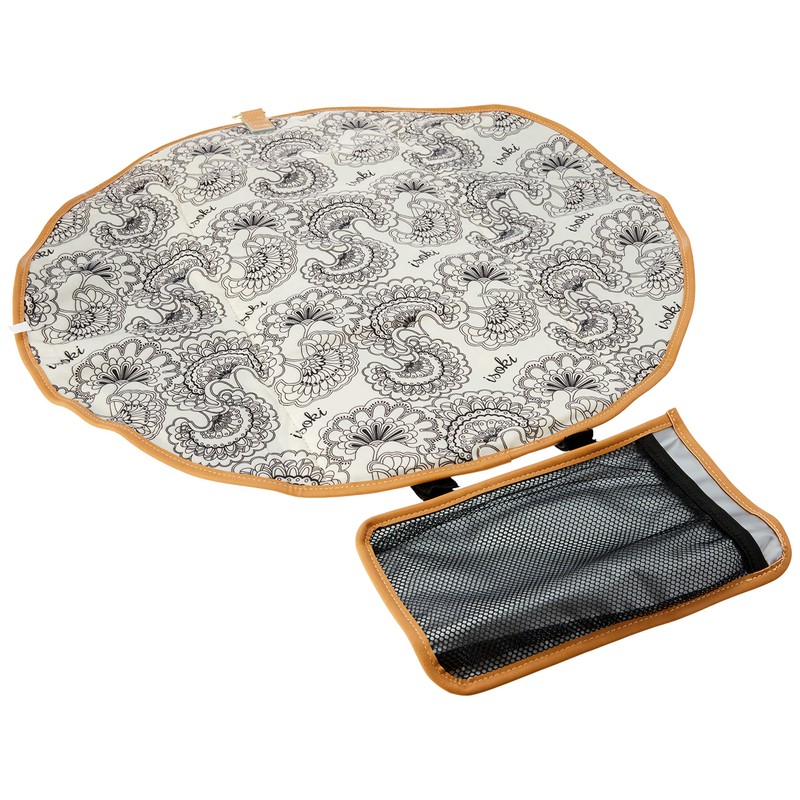 - Large round change mat with wipe clean finish. Double built in mesh pocket for nappies and wipes