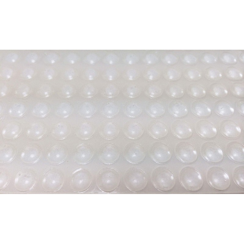 These high quality clear round hemispherical bumpers are designed to provide excellent protection for surfaces, sound damping and sound deadening. These clear bumpers can be applied to cabinets, furniture, electronics, computers, home theater equipment, desktops, etc. Each pad has a strong self-adhesive backing for easy peel-and-stick application. Made of high durability polyurethane in 65 Durometer Shore A firmness.