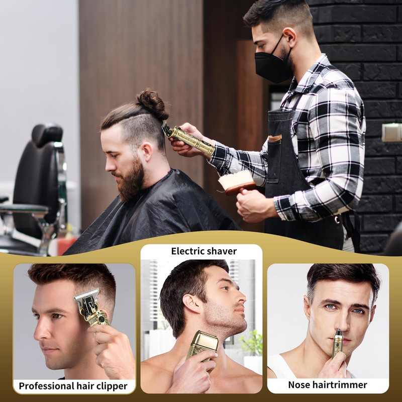 IsoLytrin Electric Shaver Razor,T-Blade Beard Trimmer Nose Hair Trimmer Shaver Set,Cordless RechargeableBarber Clippers,Professional Hair Clippers Kit with LCD for Men