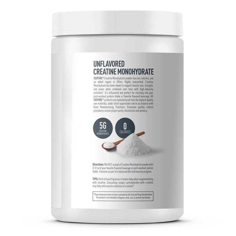 - Supporting everyday nutrition and post workout recovery is easy for any lifestyle thanks to Isopure's 100% Pure Creatine Monohydrate Powder