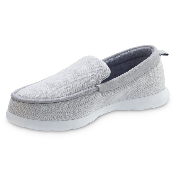 isotoner Men's Zenz Lightweight Moccasin Slipper, Slip-on Shoe, Hatch Knit-Light Grey, 13
