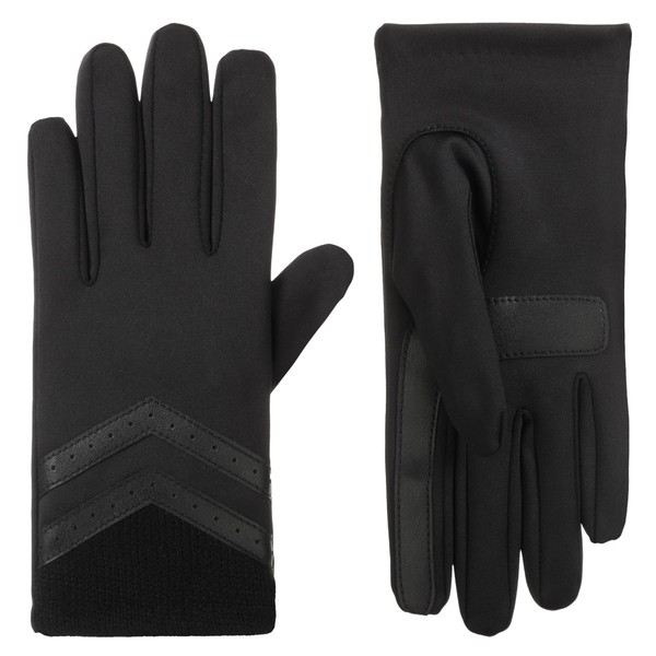 isotoner Women's Spandex Gloves with Chevron and Rib Knit Detail, Touchscreen Compatible Soft Gloves for Women, Features Pull-on Closure, Fleece Lining, Water Repellent, Black, Large/X-Large