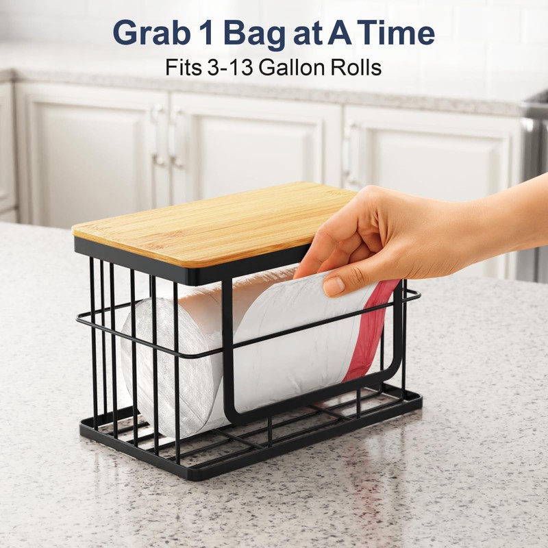 - Easy to Use: The iSPECLE trash bag organizer dispenses one bag at a time smoothly—no sticking or unravelling to the floor. The metal wire design lets you check your stock at a glance, so you’ll never run out or struggle to grab a bag