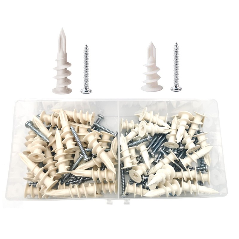 ISPINNER 100pcs Plastic Self-Drilling Drywall/Hollow-Wall Anchor Kit with Screws (2 Sizes)