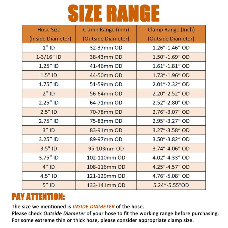 ⚫ATTENTION - Better to check your Hose OD to fit the working range before purchasing. For some extreme thin or thick hose, please consider appropriate clamp size.
