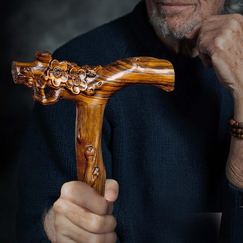 - Many times, we know that you feel older when using a cane, and lose the confidence and courage you should have. So, instead of following traditional wooden canes for men and women designs, choosing flowers and tree branches as decorative objects, combined with the shape of trees, is made through more than 30 processes of manual carving and polishing to manufacture this exquisite wood cane. It will make you more confident and unique whether you are strolling, shopping, or social gatherings.