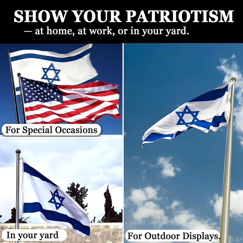 - 【Celebrate Jewish Heritage & Pride】Ideal for Yom Ha'atzmaut (Israeli Independence Day), Yom Yerushalayim (Jerusalem Day), Hanukkah, and pro-Israel events. Meaningful decor for synagogues, Jewish homes, community centers, and schools. A powerful symbol for display at rallies, demonstrations, cultural festivals, and holidays showing solidarity with Israel.