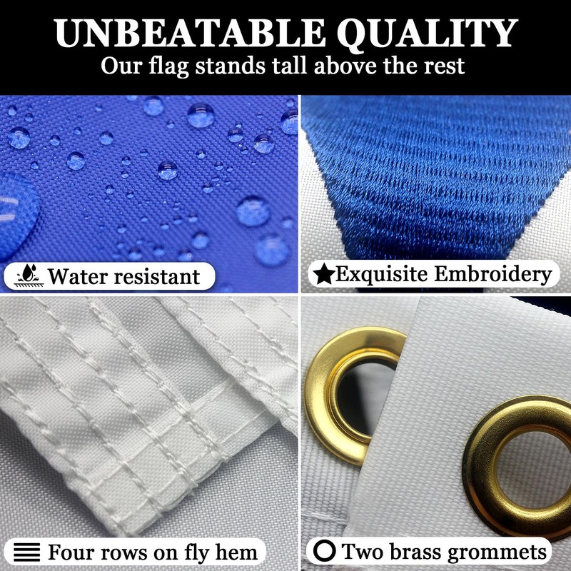 - 【Authentic Embroidered Magen David Design】Officially accurate 3x5 ft Israeli flag features a densely embroidered Star of David (Magen David) centered on a white field between two azure stripes. Double-stitched construction with reinforced edges prevents fraying. Heavy-duty 300D polyester meets Israel's national flag standards for patriotic displays and outdoor use.
