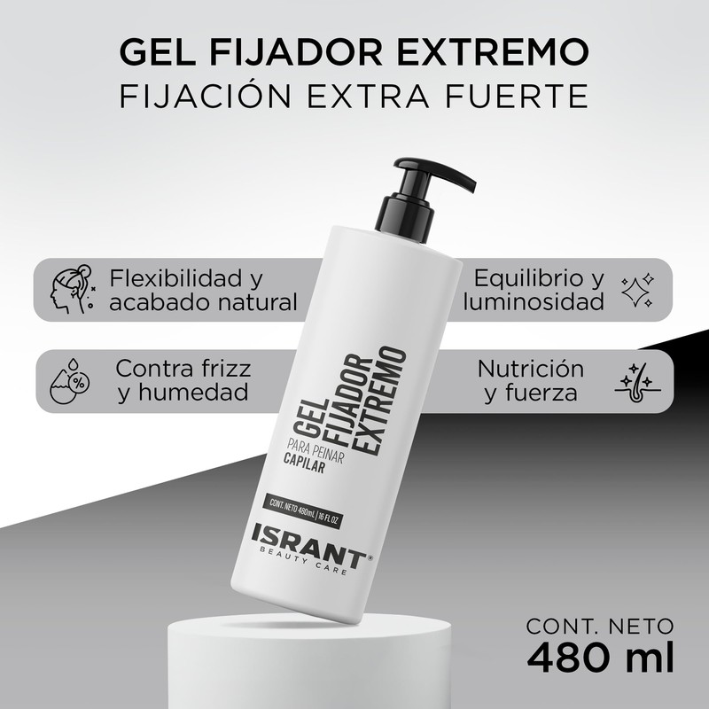 ISRANT | Gel para Cabello | Gel Fijador Extremo Máxima Fijación - Completa tu Neceser de Viaje - Baño Accesorios | Cuidado del Cabello - Protección contra Humedad y Anti Frizz | 480ml