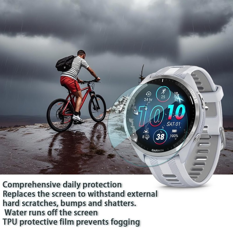 Utiliza este completo kit de protector de pantalla para el reloj inteligente Garmin Forerunner 965. El kit incluye 4 protectores de TPU transparentes y 4 tapones de carga diseñados específicamente para tu dispositivo. Estos protectores de pantalla sin burbujas proporcionan una alta claridad mientras protegen la cara de tu reloj de arañazos y desgaste diario. El material flexible de TPU garantiza una sensibilidad táctil completa y mantiene la vibrante calidad de visualización de tu reloj inteligente. Instalación fácil y sin burbujas gracias a las dimensiones bien diseñadas. El tapón de polvo del puerto de carga incluido evita que los desechos entren en el puerto de carga del dispositivo, prolongando su vida útil. Ten en cuenta que estos protectores son protectores de película de TPU, no protectores de vidrio, logrando el equilibrio perfecto entre protección y funcionalidad. Compatible solo con los modelos Garmin Forerunner 965, estos protectores de pantalla protegen tu inversión mientras mantienen el aspecto elegante de tu compañero de fitness.
