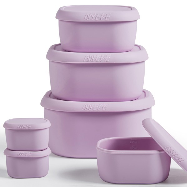 ISSEVE 6Pcs/Set Nesting Silicone Food Storage Containers with Lids, BPA Free Reusable Meal Prep Silicone Containers Lunch Box Bento Box Set (33.8oz, 20oz, 10oz, 6.7oz, 1.3oz) (Purple)