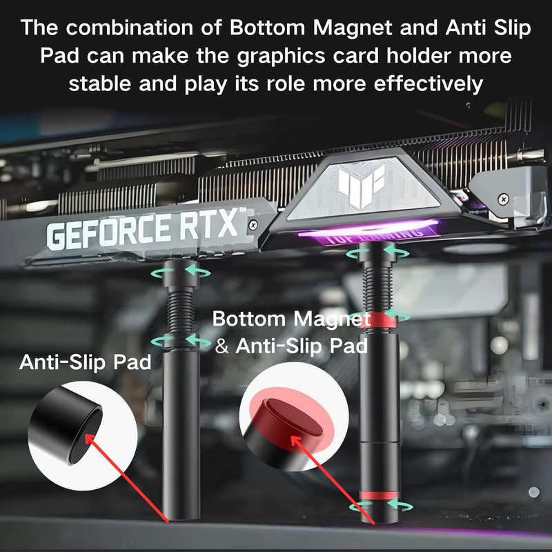 Ideal for PC builders, gamers and technology enthusiasts who want to stabilize their graphics card safely. Perfect for MATX, ITX and enclosures with long power supply brackets
