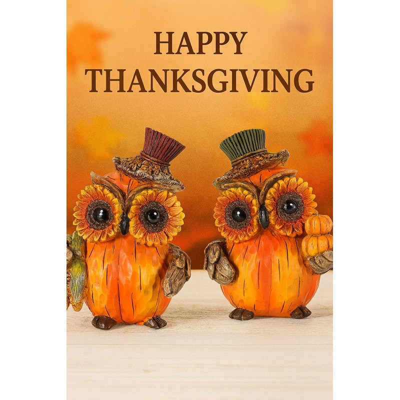 iStatue Set of 2 Thanksgiving Decorations Owl Figurines – Hand-Painted Resin Pumpkin Owls with Sunflower Eyes & Hats, 4.7” Fall Harvest Table Decor for Autumn Centerpiece (Yellow)