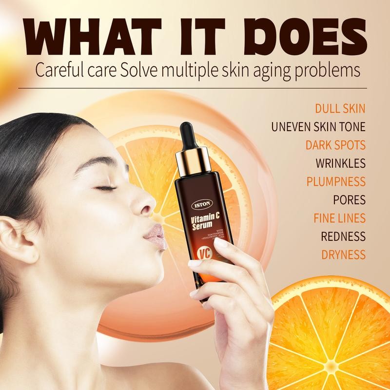 Transform your complexion with the ISTON Ultra-Moisturizing Vitamin C Facial Serum. Formulated with potent ingredients including Vitamin C, Hyaluronic Acid, Niacinamide, and Peptides, this serum brightens dark spots, evens skin tone, and reduces the appearance of fine lines and wrinkles. Its lightweight, non-greasy formula deeply hydrates and nourishes the skin, improving texture and leaving it soft, smooth, and radiant. Suitable for all skin types, including sensitive skin, it helps combat visible signs of aging while promoting a youthful, glowing complexion. Perfect for daily use, this serum seamlessly integrates into any skincare routine.