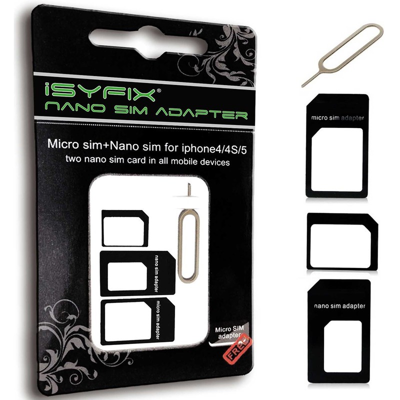 - THE iSYFIX Nano Sim Card Adapter Kit helps you to convert a NANO SIM CARD into a MICRO SIM or a STANDARD SIM CARD, and a MICRO SIM CARD into a STANDARD SIM CARD size for any cell phone or tablet.