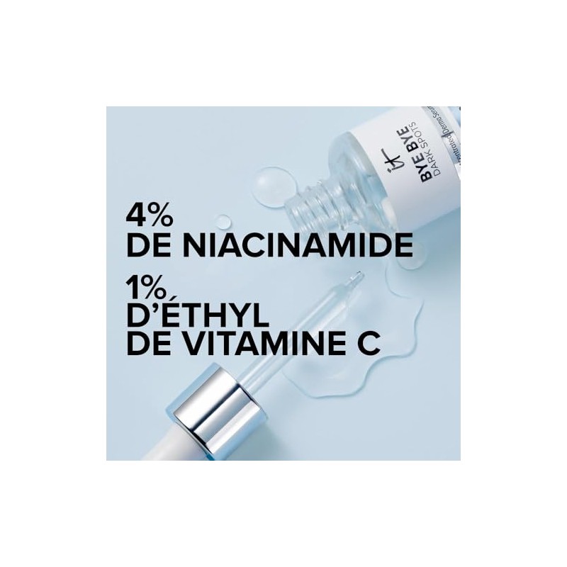 It Cosmetics Bye bye Dark Spots, Serum, Suero 4% Niacinamida Reduce las Manchas Oscuras y Mejora la Textura de la Piel en 8 Semanas, con 1% de Vitamina C Etílica, Todo Tipo de Piel, 30 ml