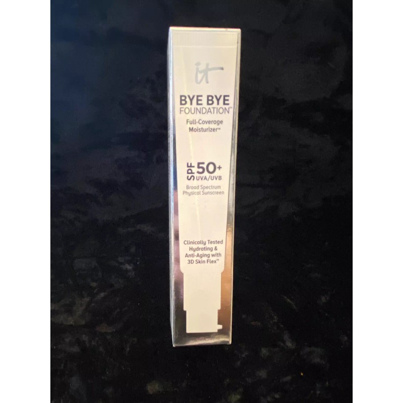Imagine skin that looks and feels beautiful after just applying moisturizer! Bye Bye Foundation is the first-ever, full-coverage moisturizer from IT Cosmetics. Bye Bye Foundation is designed to deliver hydration as your moisturizer, perfect the look of your skin as your full-coverage foundation, and protect your skin with SPF 50 sunscreen. It does everything, but it feels like nothing. Feel the difference with a formula that includes peptides, hydrolyzed collagen, fermented rice, fermented coconut water, fermented sea kelp, fermented green tea, fermented white ginseng, fermented pumpkin, and antioxidants.