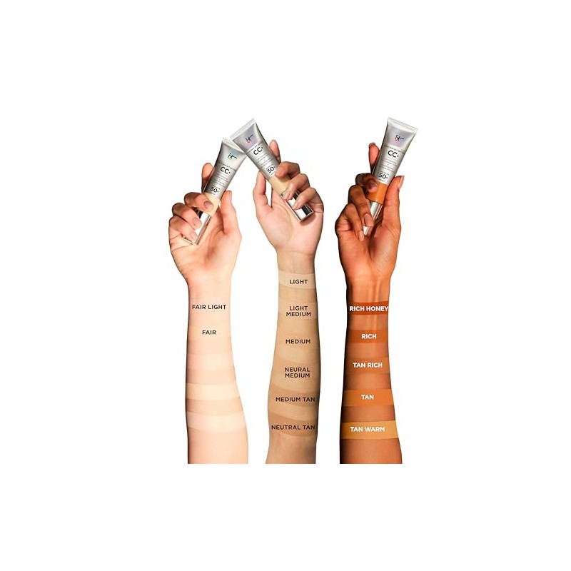 IT Cosmetics - It Cosmetics CC Cream con Protector Solar FPS 50+ - Base de Maquillaje 7 en 1, Cobertura Completa, con Suero Hidratante, Vitamina E y Niacinamida, 32 ml