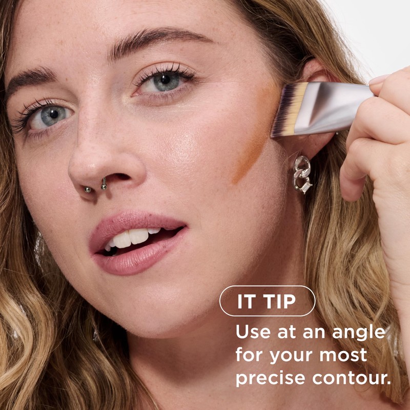 - Contour & Precision - Dip the spatula brush into your contour product and use it to draw thin, precise lines along cheekbones, nose, jawline and hairline. Use the No. 7 brush to blend and buff out contour upwards for a more lifted look.