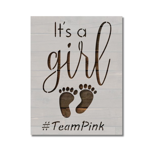 It's a Girl Baby Gender Reveal Stencil Team Pink Template Reusable for Painting on Walls, Wood, Arts and Crafts (727) - 8.5 x 11 Inches