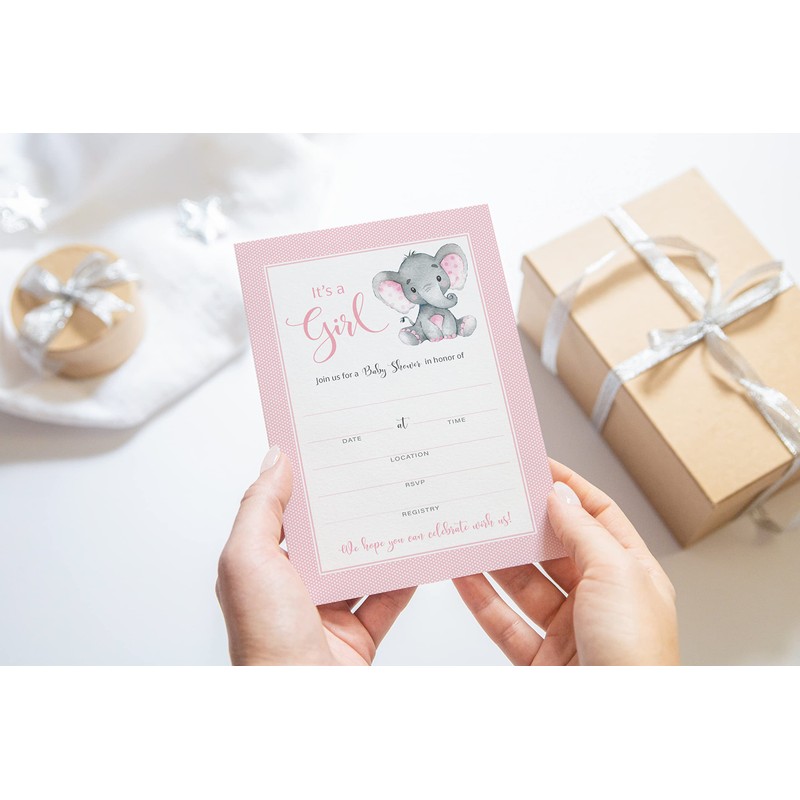 IT’S A GIRL! — Girl Elephant BABY SHOWER INVITATIONS— Pack of 25 — PINK Peanut Baby Shower Blank Fill-in INVITES, Chic, Unique, PINK Baby GIRL Sprinkle Invites, DIY Invites Polka Dot SKU I500-INV1
