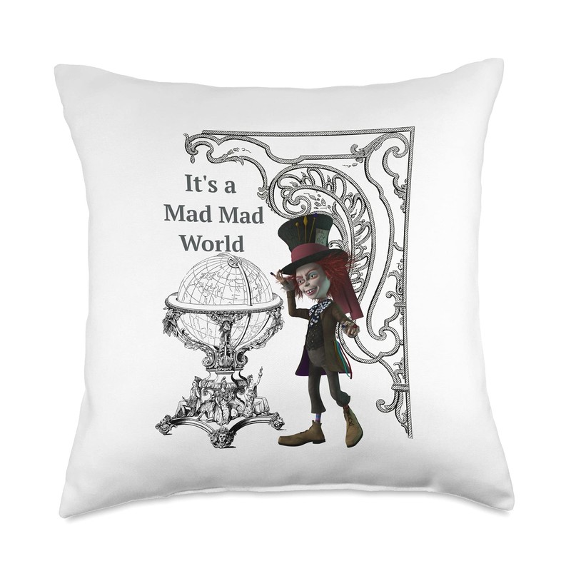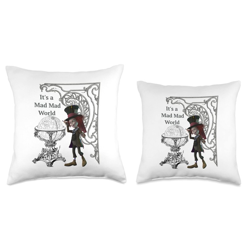 It's a Mad Mad World Design Arty character & globe Throw Pillow