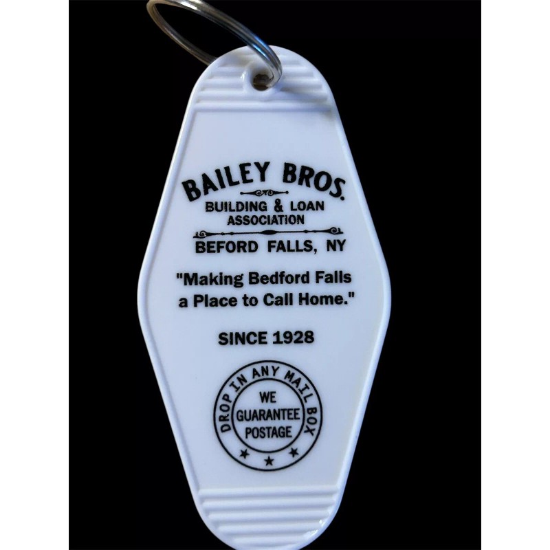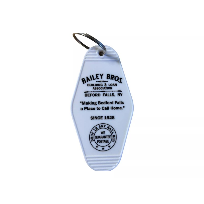 Celebrate the timeless charm and heartfelt message of the beloved 1946 classic with this Bailey Brothers Building & Loan Association key tag. Featuring the iconic name "Bedford Falls, New York" alongside the heartfelt phrase, "Making Bedford Falls a Place to Call Home," and proudly marked "Since 1928," this key tag embodies the spirit of community, hope, and second chances that made the film unforgettable.