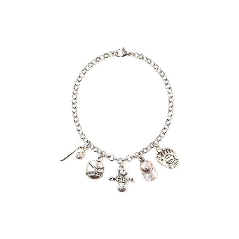 It's All About...You! Adjustable 8.5” Stainless Steel Bracelet I Love Softball Bat & Ball Baseball Cap Mitt Personalize with Clip on Charms 68F