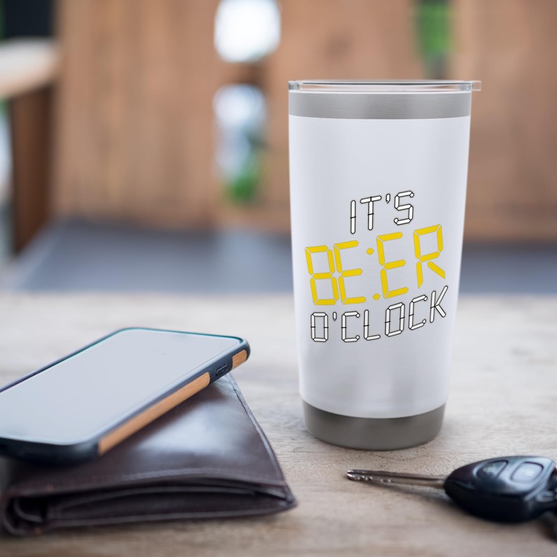 IT'S BEER O'CLOCK Digital Clock Design T-Shirt – Funny Beer Stainless Steel Insulated Tumbler