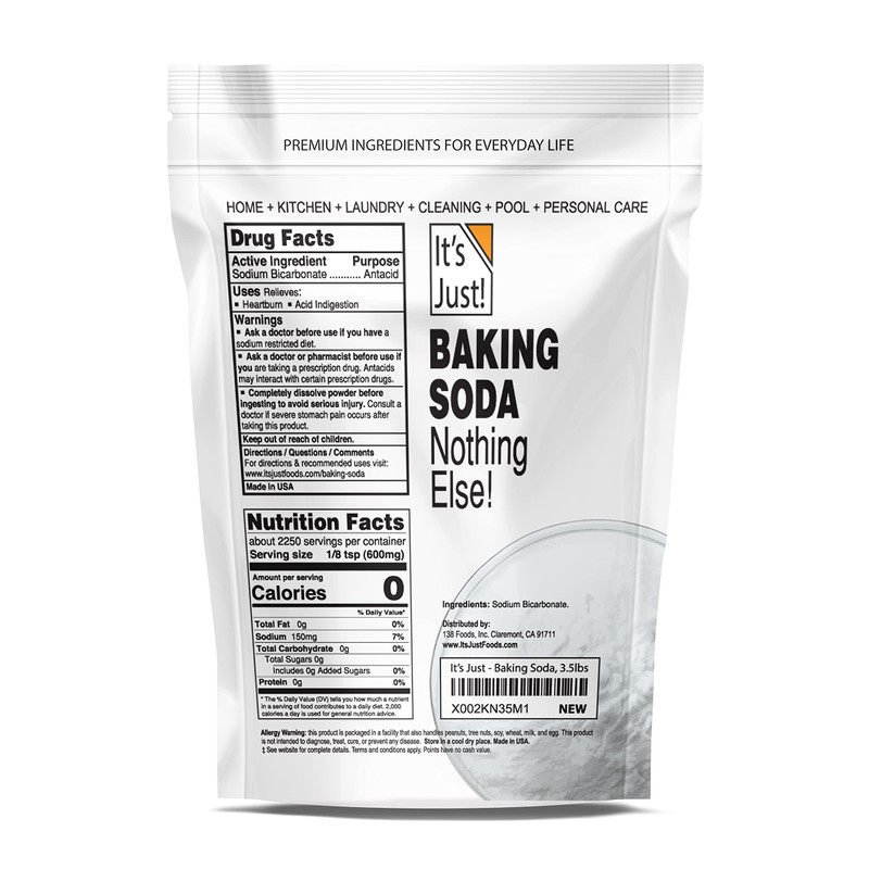 It's Just - Baking Soda, 100% Pure Sodium Bicarbonate, Food Grade, Non-GMO, Made in USA, Cooking, Baking, Aluminum Free (3.5 Pound)