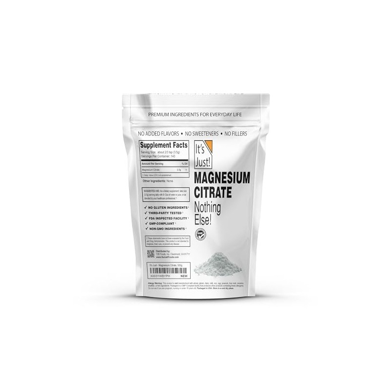It's Just! It's Just - Magnesium Citrate Powder, 500g, Magnesium Supplement, Unflavored (500g / 143 Servings)