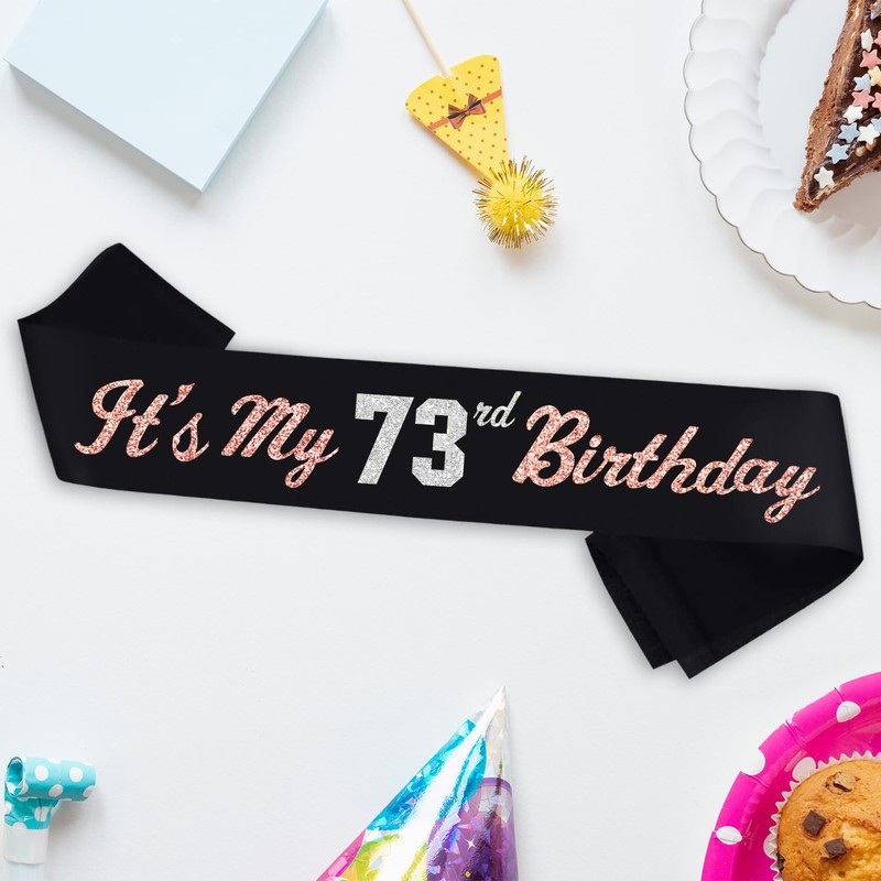 - This sash is the perfect touch for any 73rd birthday celebration. Celebrate in style with this fashionable sash.