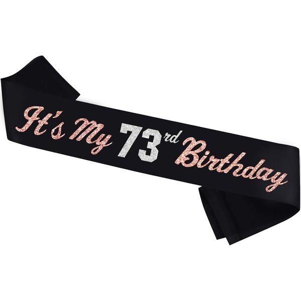 It’s My 73rd Birthday Sash Silver Rose Gold Foil Black Satin Birthday Sash Happy 73rd Birthday Party Gift Decorations Favors for Women Girls Men Boys (73)