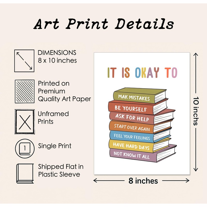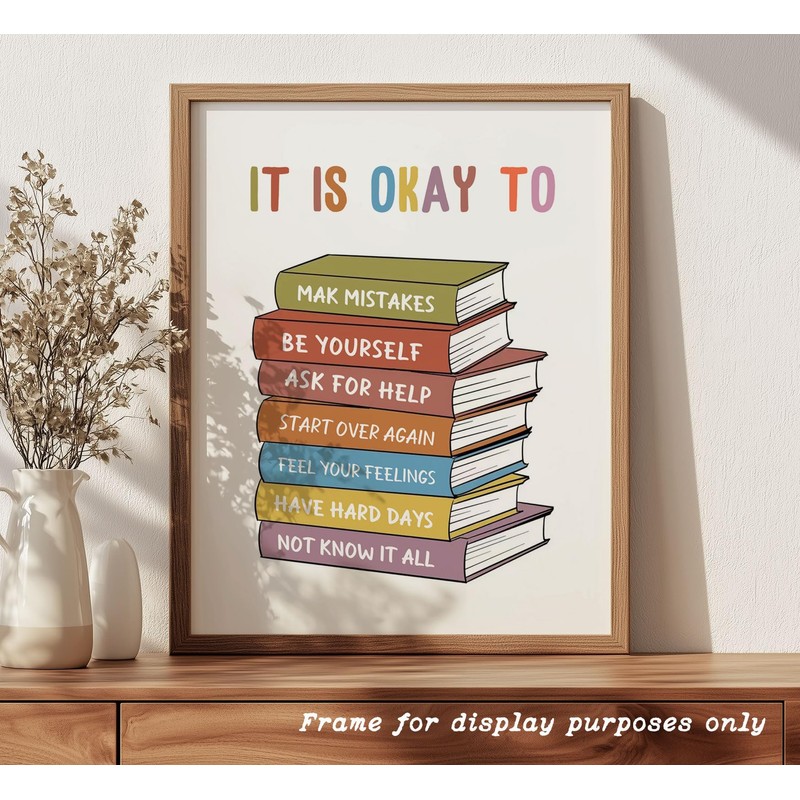 - Motivational Classroom Print – "It's Okay To Feel" wall art inspires kids with positive affirmations, perfect for homeschool, classroom, or playroom decor.