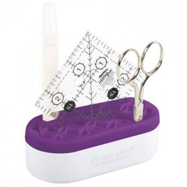 The Mini Stash N Store is the perfect craft organizer for tight spaces. Silicon pockets hold notions, marking tools, scissors, and any other items you need on hand.