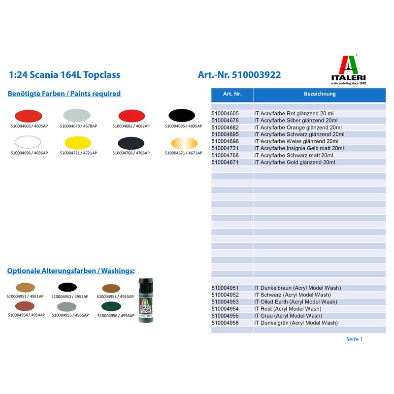 Italeri 1: 24 Scania 3922 164L TOPC Lass, Vehicle