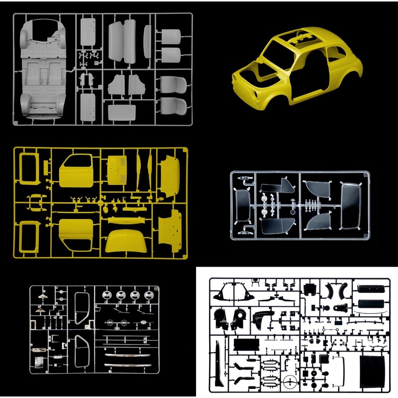 Italeri 4715 1:12 Fiat 500 F Upgraded Edition Model Building Kit, Standing Model Building, Crafts, Hobby, Gluing, Plastic Kit, Detailed Unpainted