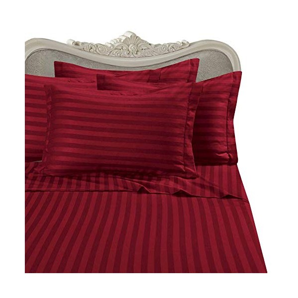 Italian 300 Thread Count Egyptian Cotton Sheet Set DEEP Pocket, Twin XL, Red Stripe, Premium Italian Finish