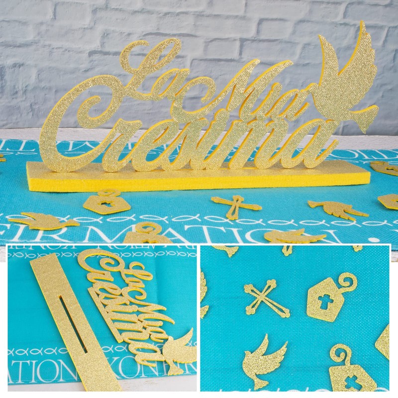 Italian 37 x Confirmation Table Decoration Felt 1 x Stand La Mia Cresima Lettering 36 x Confetti Decoration for Christening Confirmation Boy Girl
