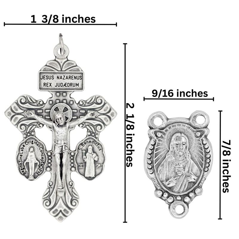 - DIMENSIONS - Crucifix 2-1/8” - Centerpiece 7/8” - Recommended to use with 8-10 mm rosary beads.