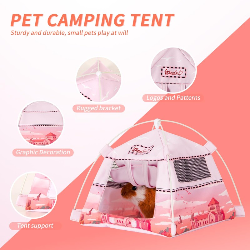 Breathable tent accommodates Syrian hamsters, guinea pig babies, mice, and degus, serving as an ideal hamster hideout, rat bed, and multi-species retreat.