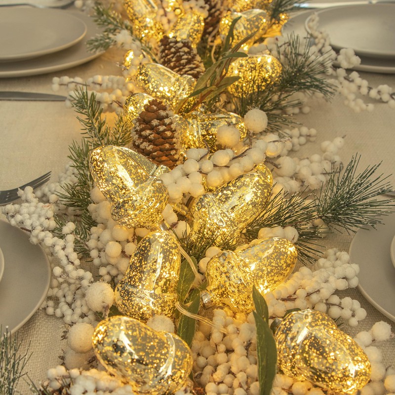 - ITART Plastic Mercury Hazelnuts Garland Lighted with Timer is perfect for Christmas tree, Table Decor, Fireplace Mantel, Evergreen Garland, and Party decorations.