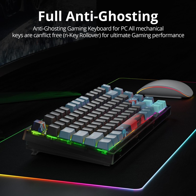 - 【75% RGB Mechanical Keyboard】75% layout with 82 keys, retains separate arrow keys, making the desktop cleaner without sacrificing essential functionality. It can perform the commands of a full-size keyboard with more space for mouse movement.This gaming keyboard is a boutique equipment for PC gamers and office users.