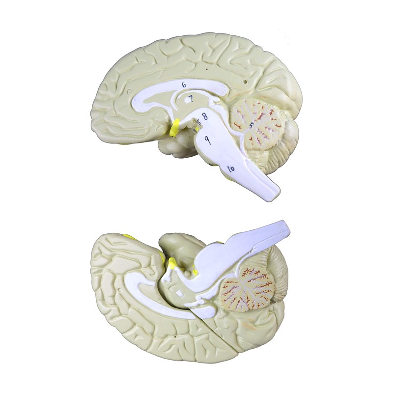 This life-size human brain model is intended for anatomical study use. It depicts the frontal, parietal, temporal, and occipital lobes. The brain stem and cerebellum are also depicted.